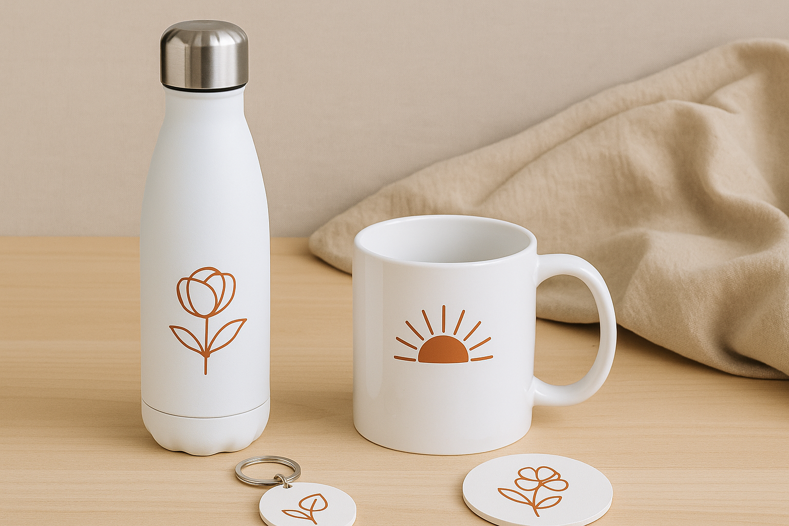 Ofrecemos productos personalizados para empresas que quieren reforzar su imagen de marca y conectar con clientes, empleados y eventos corporativos. Trabajamos con diferentes técnicas (DTF, UV-DTF, vinilo y sublimación) para garantizar acabados profesionales, duraderos y adaptados a cada necesidad.